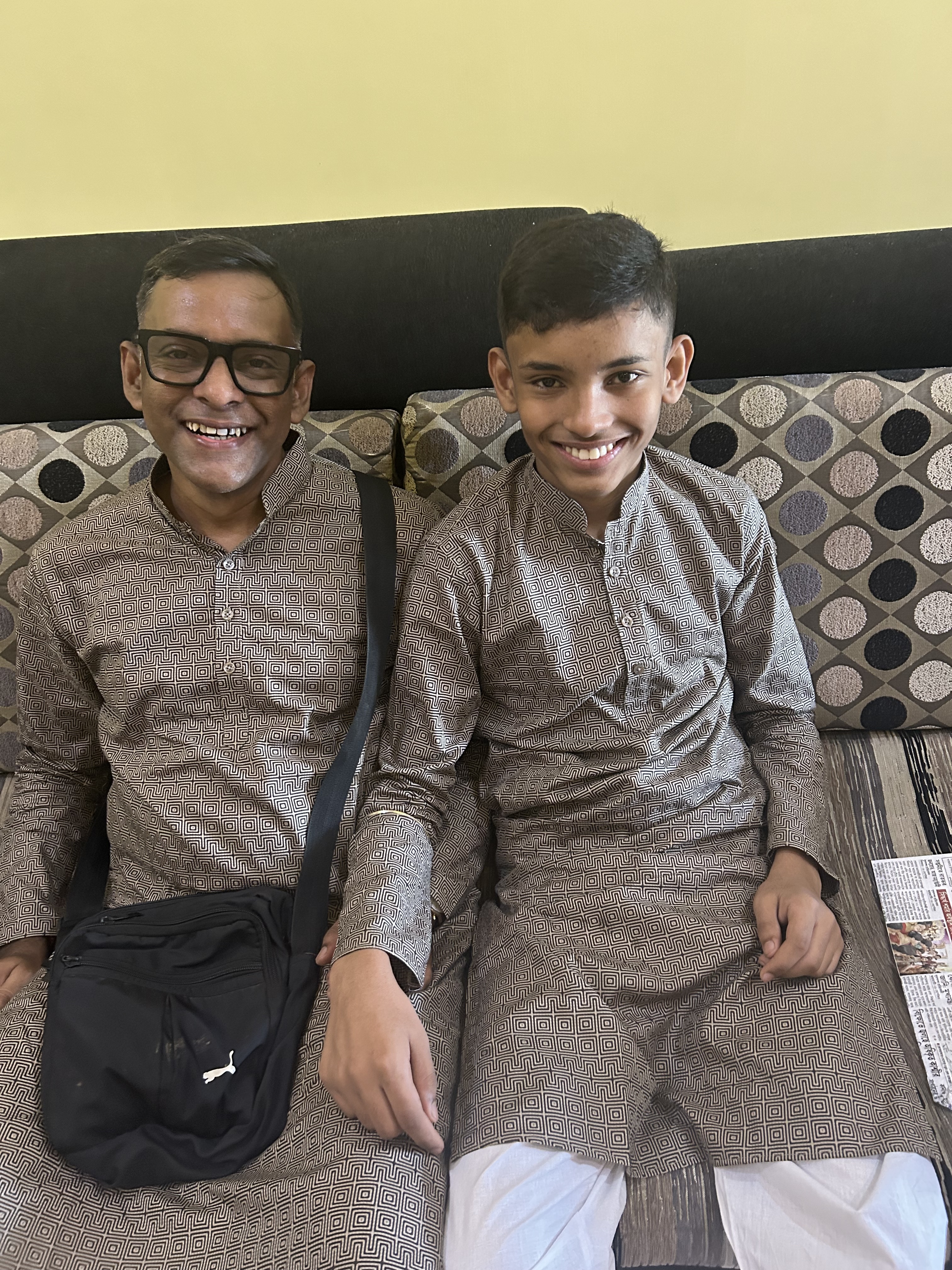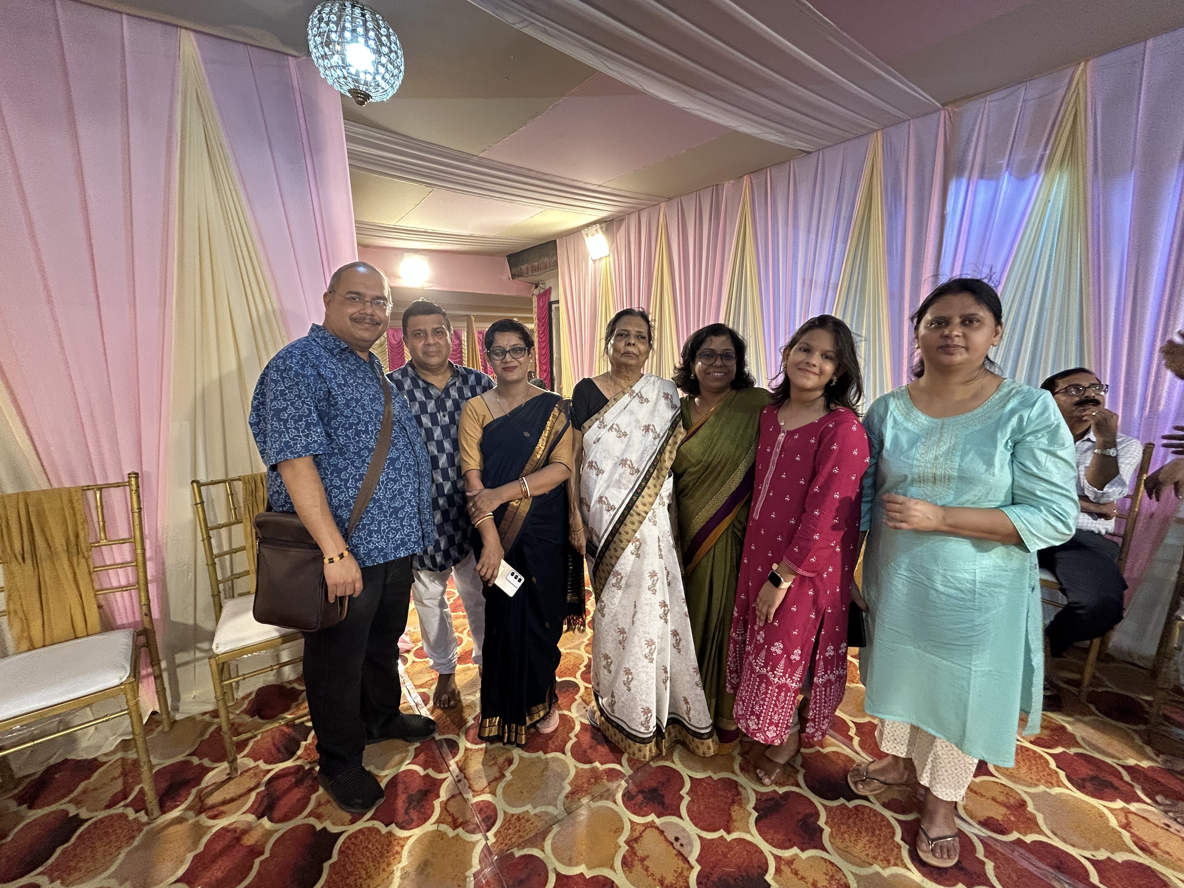 After the prayers came the easy camaraderie: photos snapped in half-serious poses, bursts of adda, the gentle chaos of laughter filling corners of the home. Lunch was a feast, as always, with a steady stream of guests braving not just the festive crowd but also the sweltering heat of the afternoon.