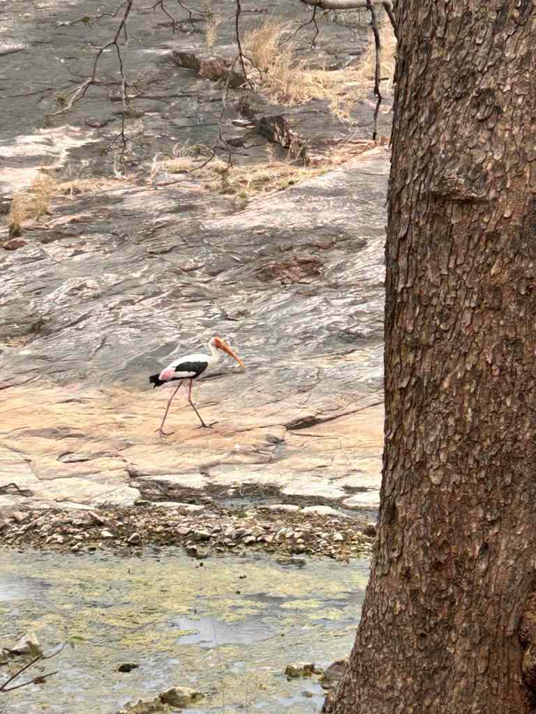 At 6:00 am, just as the first light softened the horizon, I entered Zone 1. The air was still cool, carrying a sense of anticipation. At the entrance stood a magnificent banyan tree—ancient, sprawling, almost ceremonial in its presence. As we moved ahead, a flock of painted storks broke the stillness, their movements graceful against the morning light.