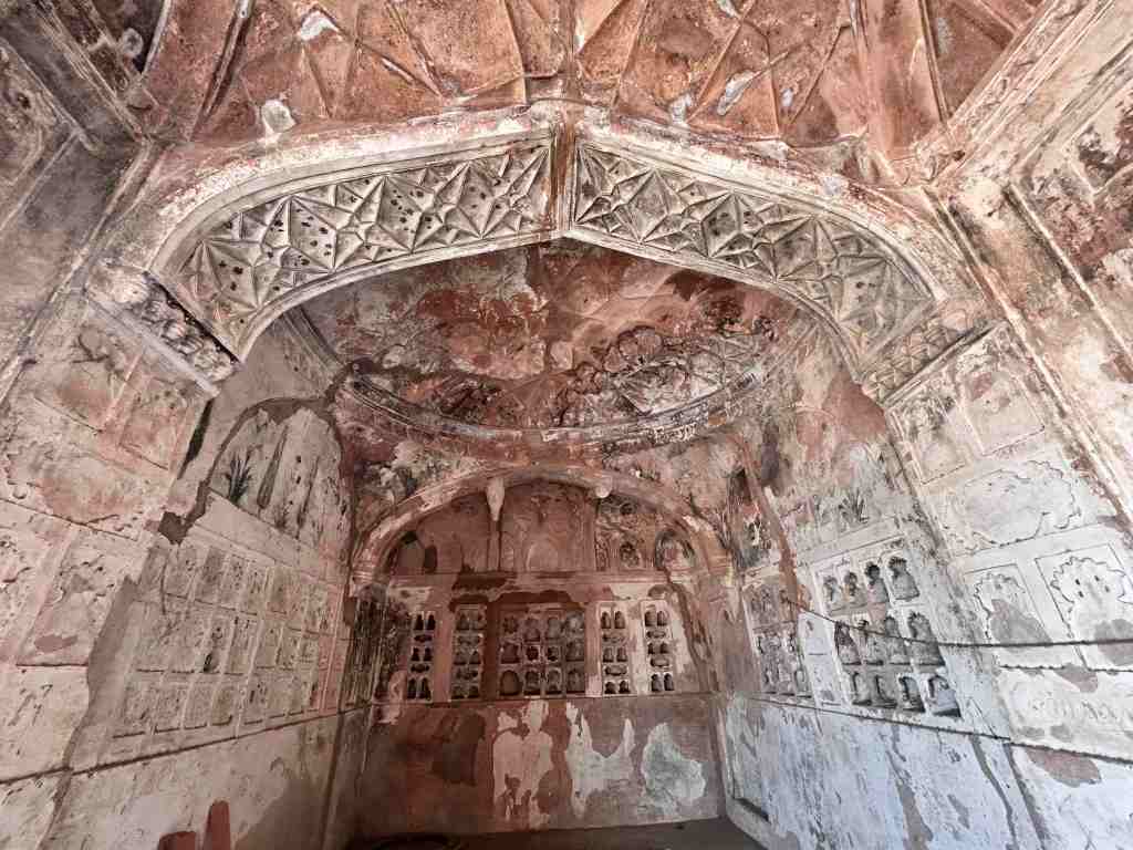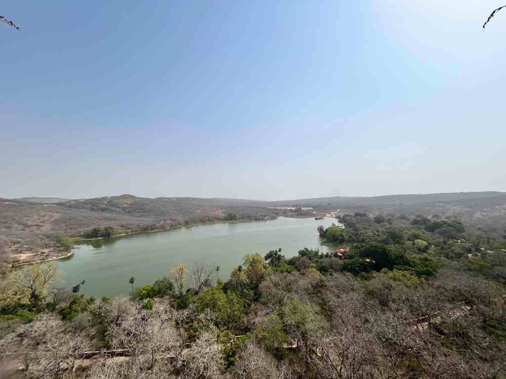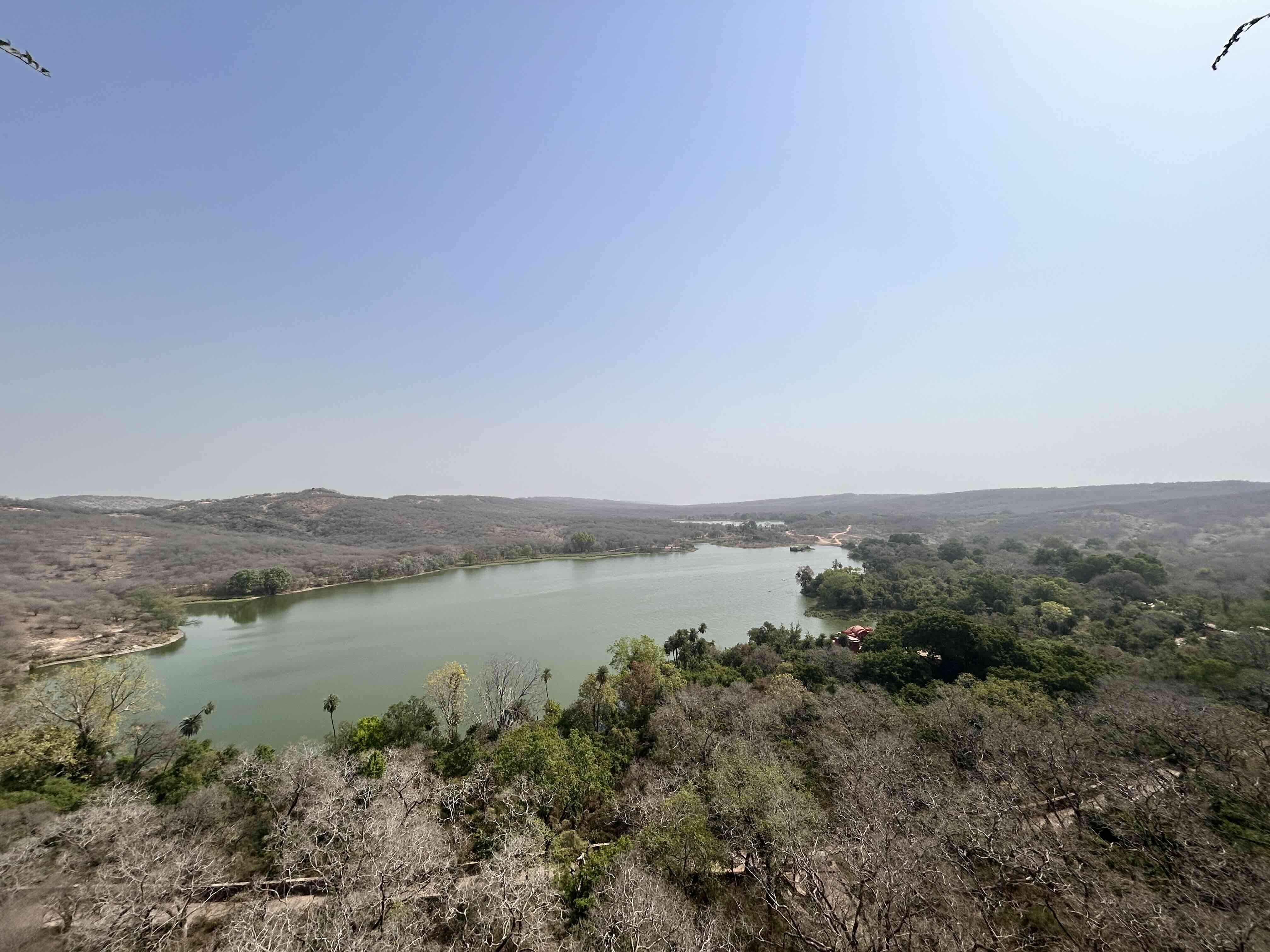 Taking a less-trodden path, we reached Badal Mahal. Before I could take in the view, my guide led me through a narrow passage that opened onto the rooftop. The reward was immediate, a sweeping panorama of Padam Talao and Zone 3 of the park below. Back inside, I paused in the cool interiors, imagining queens seated on swings that once hung from the hooks still visible on the ceilings, looking out over the same tranquil waters.
