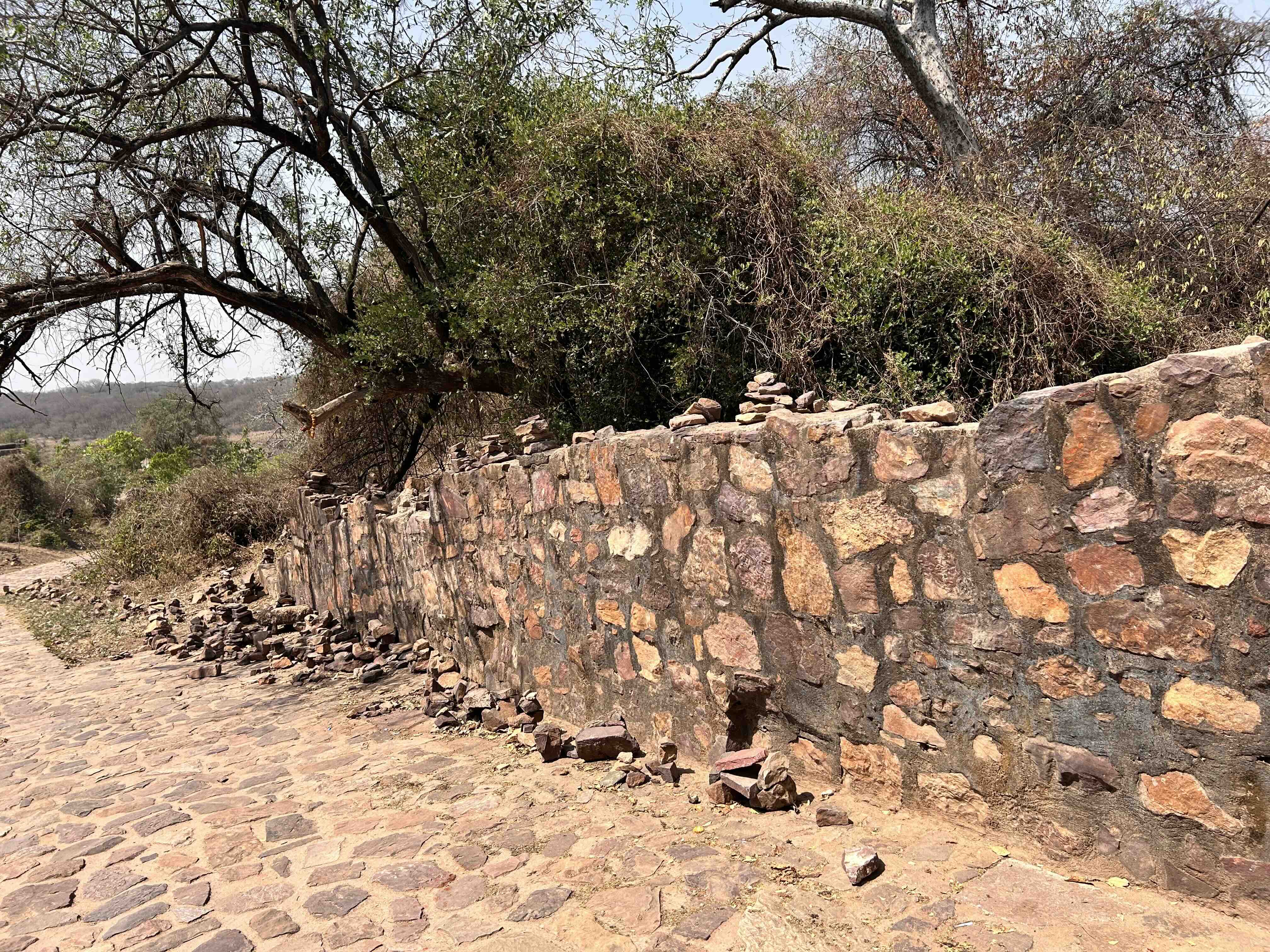 Before he could begin, I told him that while I would visit the temples, my interest lay in the fort and its history. The fort has seven gates, though only four, Navlakha Pol, Hathi Pol, Ganesh Pol, and Andheri Pol (or Toran Dwar), are accessible; the others lie within the core of the national park. Rising from the rugged folds of the Aravallis, the fort stretches across nearly seven kilometers of formidable walls.