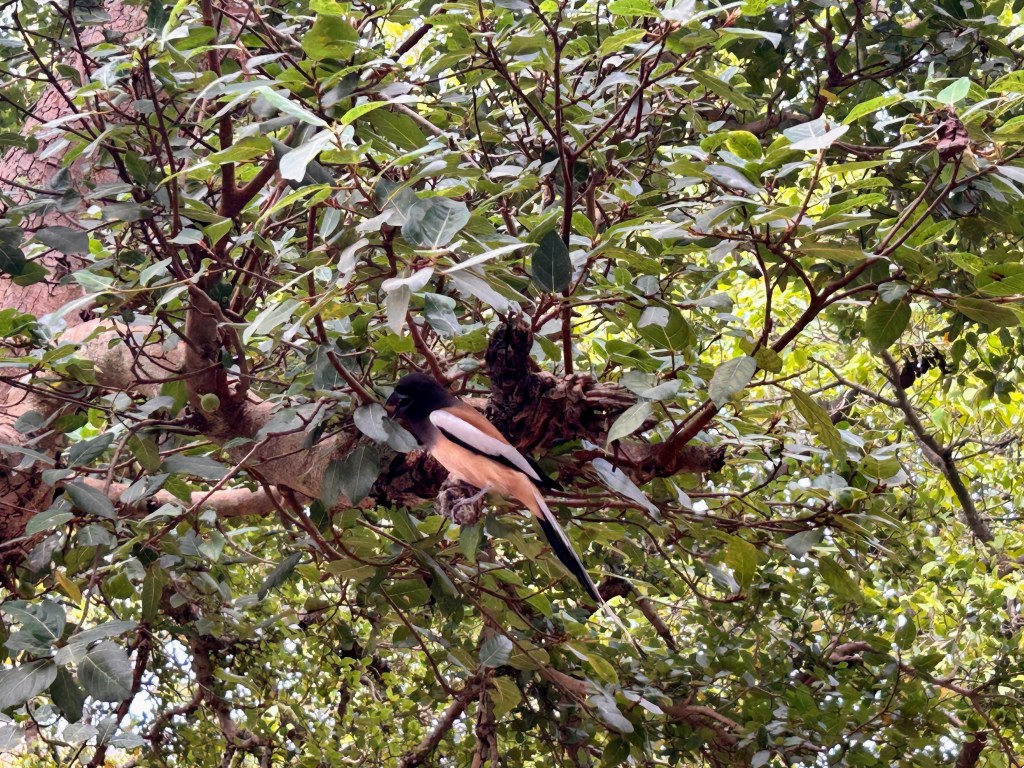 The afternoon was unforgiving, 42 degrees and rising. As we entered Zone 4, the guide mentioned it was known for good sightings. A Rufous Treepie greeted us at the Singh Dwar checkpost, as if curious about yet another hopeful entrant. Most animals had retreated into the shade. We saw the familiar spotted deer, sambar, and at one point, two stags locked in combat.